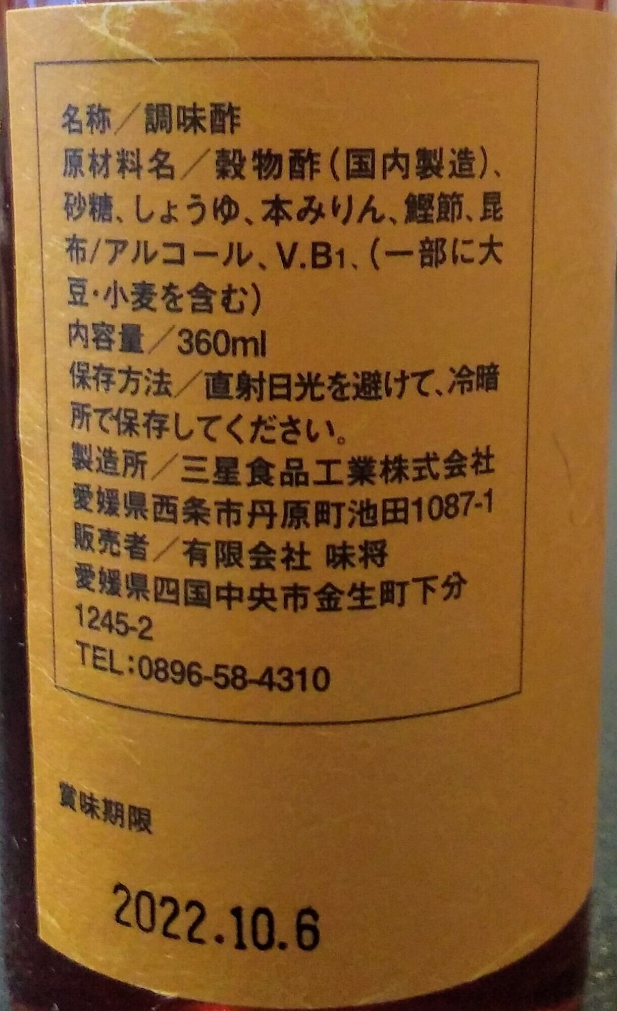 四国中央市(旧川之江市)で創業40年。味将特製こだわりぽん酢2本、甘辛なんばん酢2本、海鮮丼醤油2本のよりどり6本セットになります。